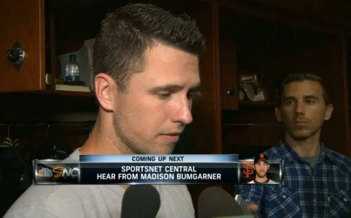 Interviewing Buster Posey inside the San Francisco Giants clubhouse