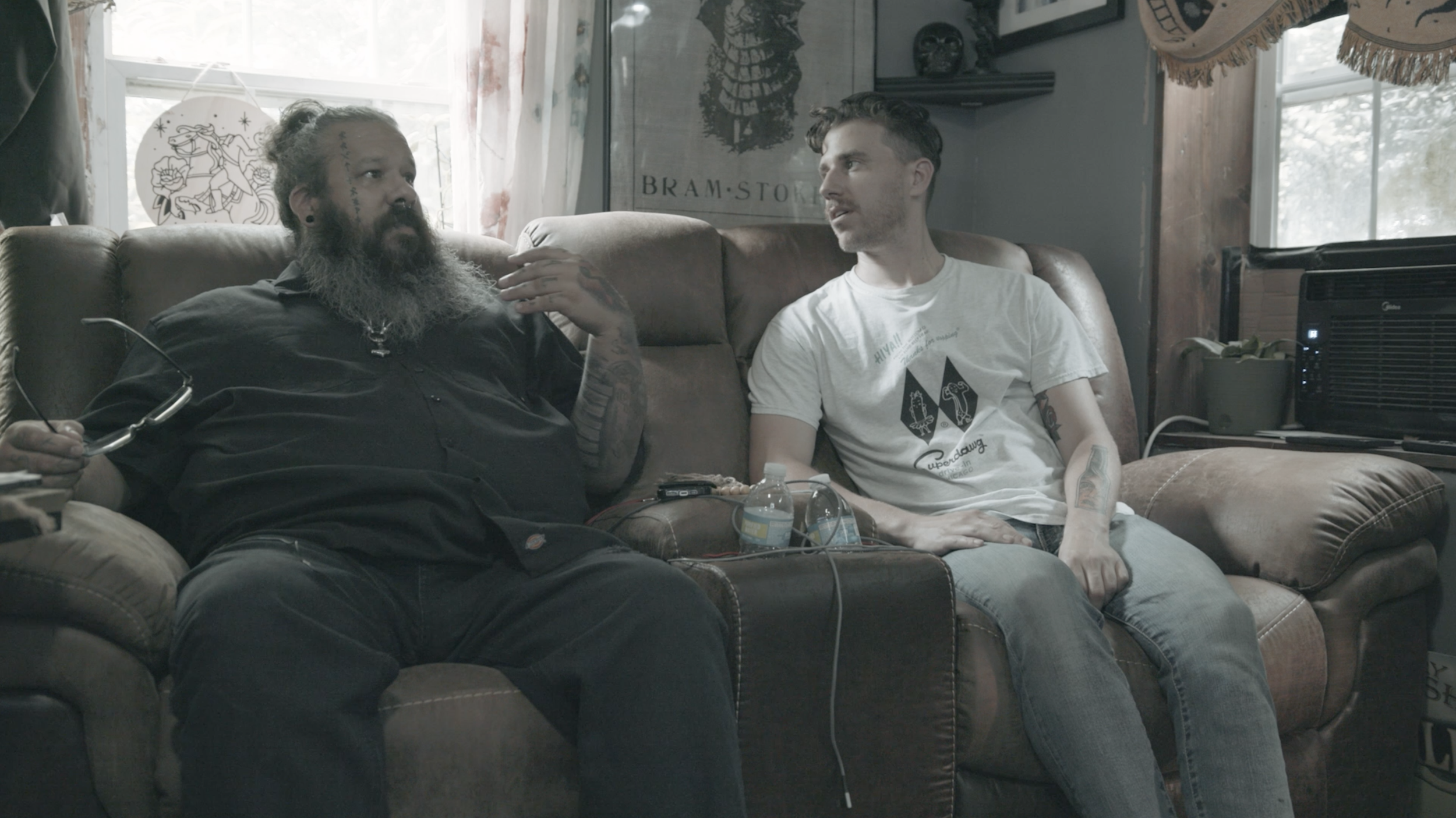 Oscar Iglesias (left) tells me about how he discovered that he and I share the same father (production still from ARE YOU MY BROTHER?)